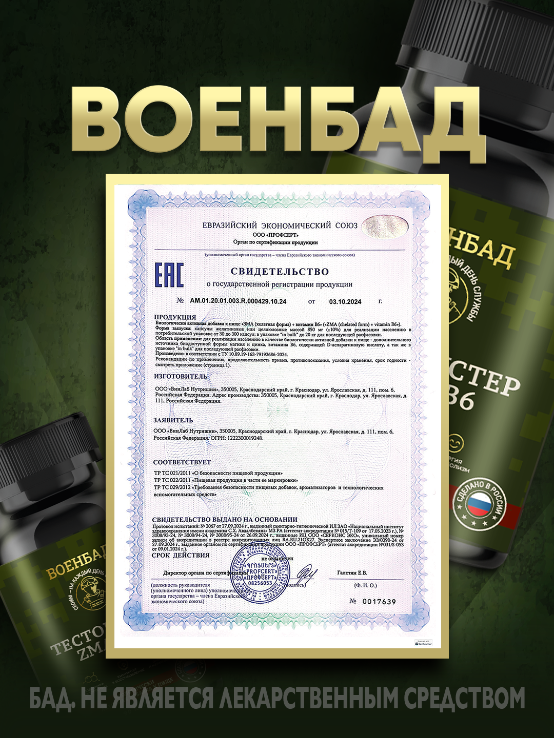 Тестобустер ZMA + B6 caps, магний, цинк, витамин B6, БАД, 90 капсул